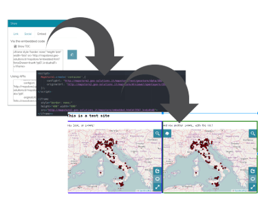 This release gives you more options when embedding a map. You can now choose to embed with an IFrame or by using the new MapStore2 Javascript API. The share tool now provides the two options with the code you can copy and paste in your site.
